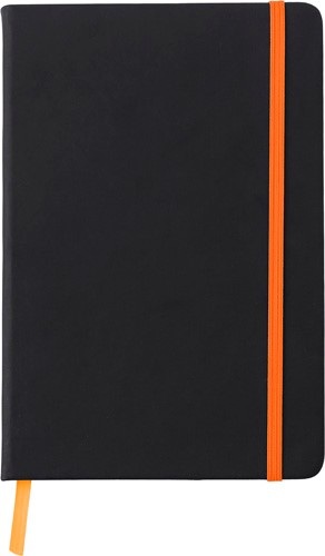 Zápisník A5 s 96 stranami, záložkou zo stužky a elastickou gumičkou.