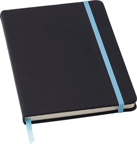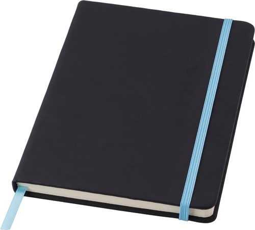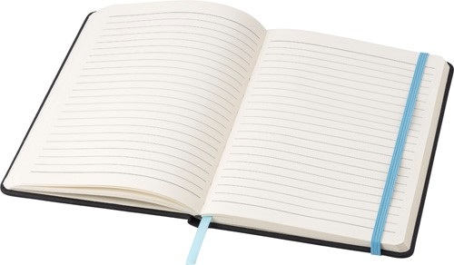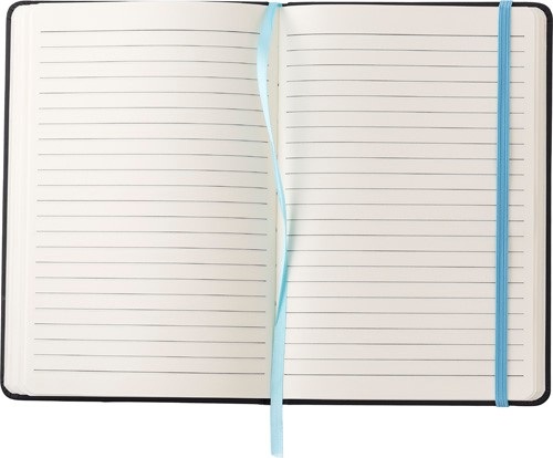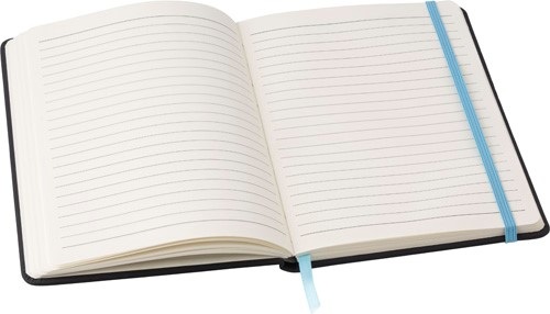 Zápisník A5 s 96 stranami, záložkou zo stužky a elastickou gumičkou.