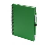 Poznámkový blok A5 sa 70 čistými listami a špirálovú väzbou v kartónových doskách, vr. rovnako farebného guľôčkového pera z recyklovaného papiera s modrou náplňou.