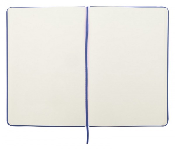 Sada s blokom s doskami z PU kože so 100 čistými listami a rovnako farebným plastovým guličkovým perom s modrou náplňou, v bielej darčekovej krabičke.
