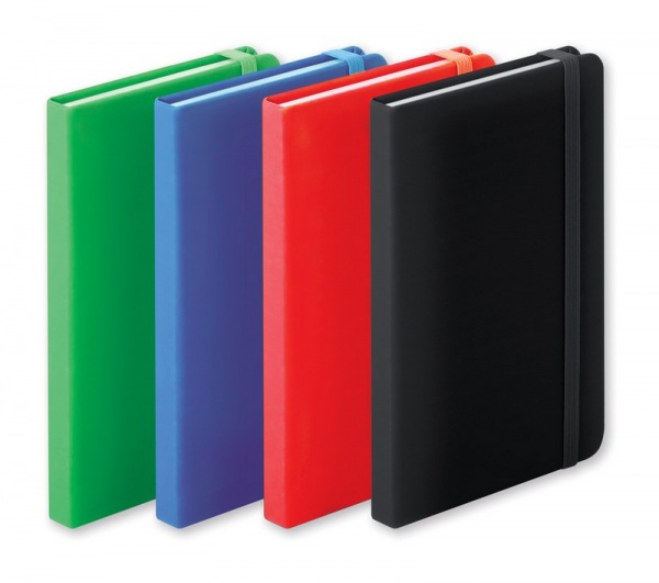 Blok s doskami z PU kože, so 100 linajkovými listami, záložkou a gumičkou.