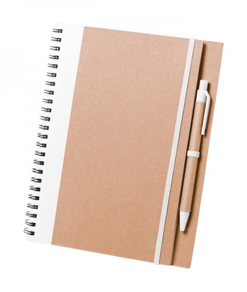 Blok z recyklovaného papiera, so 60 čistými listami a s papierovým guľôčkovým perom.