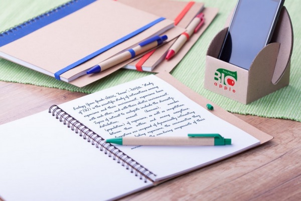 Blok z recyklovaného papiera, so 60 čistými listami a s papierovým guľôčkovým perom.