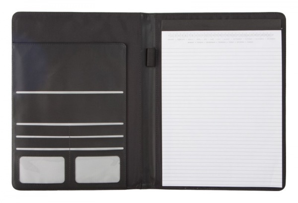 A4 sloha na dokumenty z PU kože s 20 listým linkovaným blokom, vreckom na vizitky a miestom pre pero.