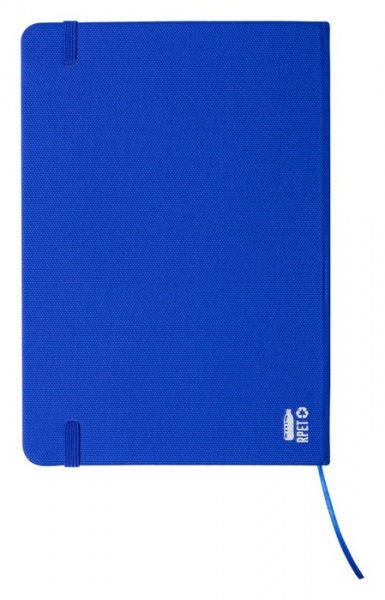RPET blok A5 potiahnutý polyesterom s 80 linkovaným listami, záložkou a gumičkou.