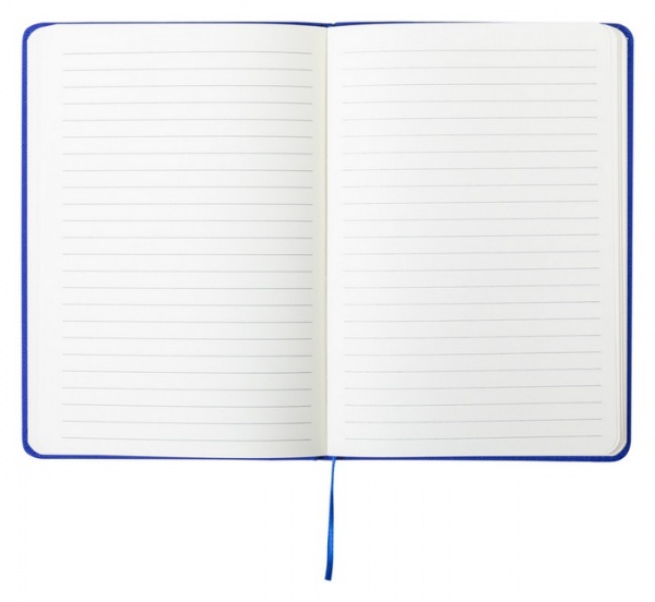 RPET blok A5 potiahnutý polyesterom s 80 linkovaným listami, záložkou a gumičkou.
