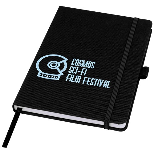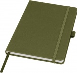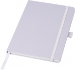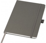 Zápisník formátu A5 s obálkou z látky s RPET. Obsahuje 80 listov linkovaného recyklovaného papiera 70 g/m2 so stuhovou záložkou a očkom na pero. Je možné kombinovať s guličkovým perom z RPET Honua 107757.