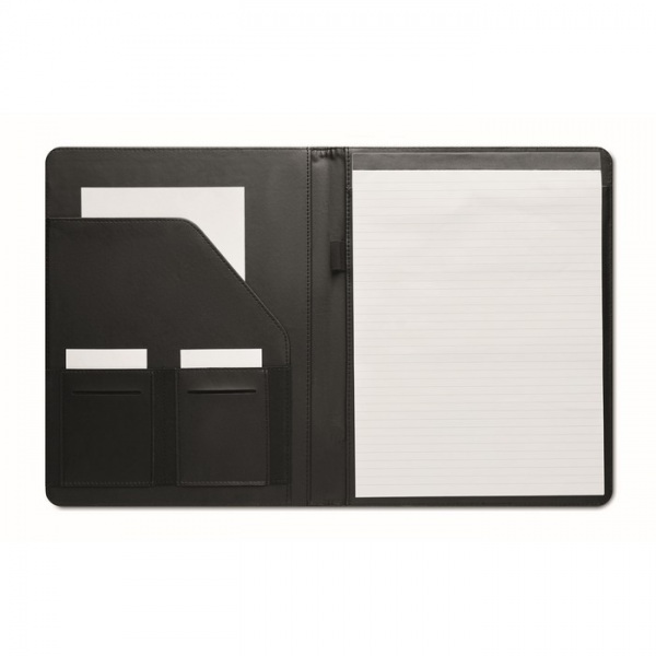 Portfólio veľkosti A4 z dvojfarebného materiálu 300D RPET. Obsahuje vnútorné priehradky a pútko na pero. Vrátane linajkového poznámkového bloku na 20 listov.