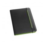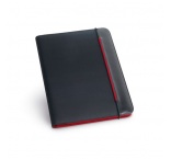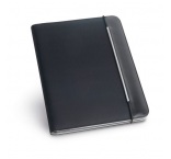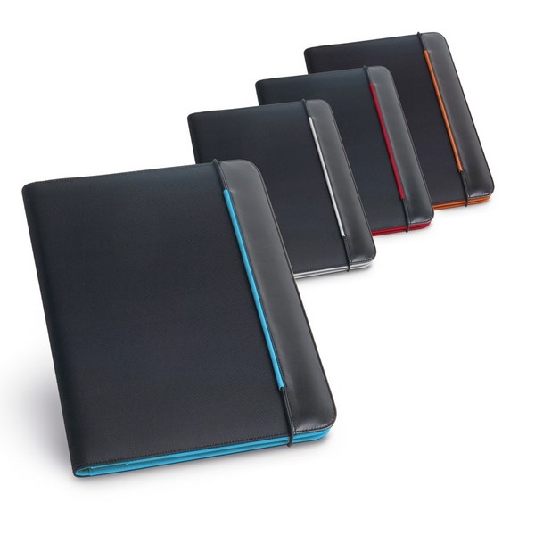 Zložka A4 z PU a 800D s vnútrom z mikrovlákna. so zapínaním na gumičku. Obsahuje 20-listový blok s linkovaným papierom, 3 vrecká a držiak na pero (pero nie je súčasťou balenia)