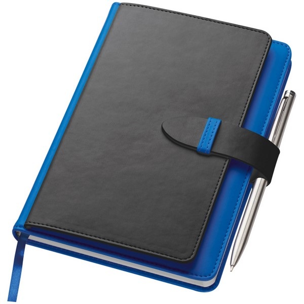 Zápisník A5 z PU s 256 linajkovanými stranami 128 listov, obsahuje držiak na pero a priestor na 6 vizitiek.