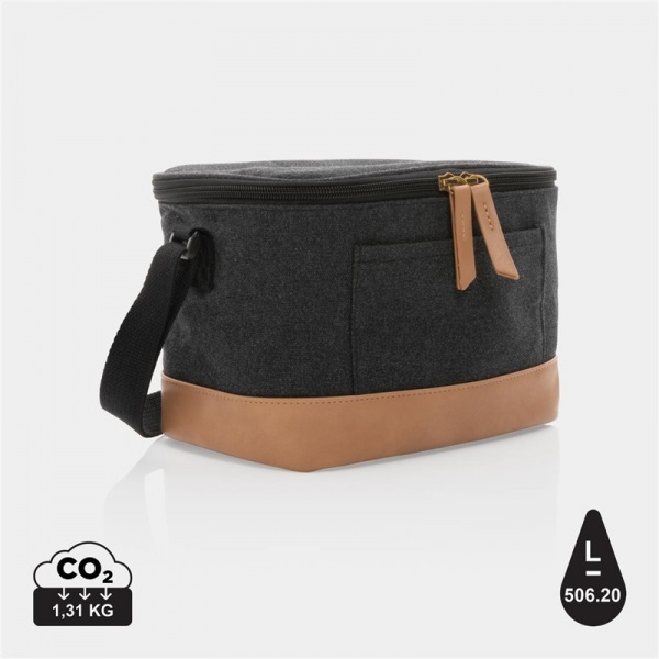 Chladiaca taška z 16 oz. recyklovaného canvas s elegantnými detailmi z PU kože. Priestor pre 6 plechoviek, predné otvorené vrecko. Vrátane skenovateľnej zložky AWARE™ garantujúcej obsah recyklátu. 60% rec. bavlna, 40% rec.polyester, podšívka z PEVA.