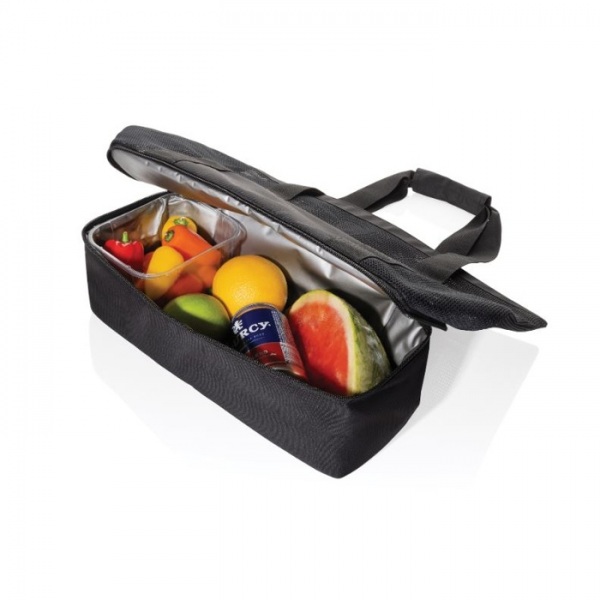 Priestranná priehradka na zips je podšitá priedušnou sieťovinou, zatiaľ čo otvorené vrecko na vonkajšej strane ponúka ľahký prístup. 2 pevné popruhové uši so suchým zipsom. Samostatná chladiaca priehradka s podšívkou PEVA. AWARE™. Neobsahuje PVC
