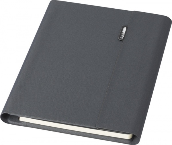 Portfólio s certifikáciou RCS je čiastočne vyrobené z recyklovaného spotrebiteľského polyesteru. Obsahuje pútko na pero, harmonikové vrecko a 64 krémovo sfarbených linkovaných listov s 80 g/m2 recyklovaným papierom z trvalo udržateľných zdrojov.