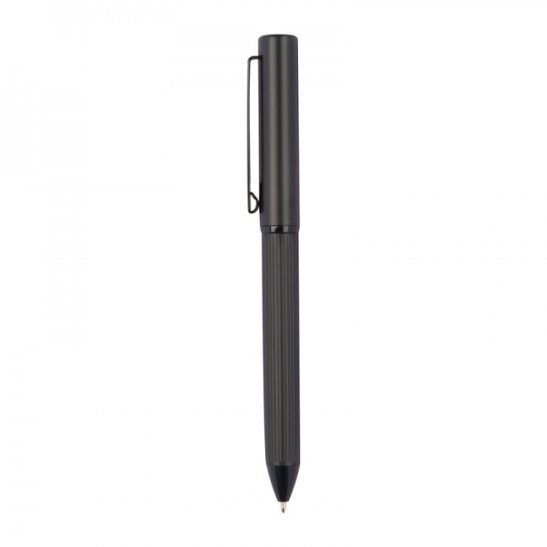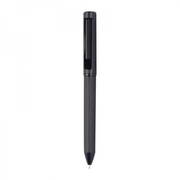 Vysokokvalitná darčeková súprava pozostávajúca z kovového guľôčkového pera (modrá náplň) a zápisníka s mäkkou obálkou a 128 linajkovanými stranami vyrobenými z recyklovaného papiera. Balené v čiernej darčekovej krabičke s magnetickým uzáverom.