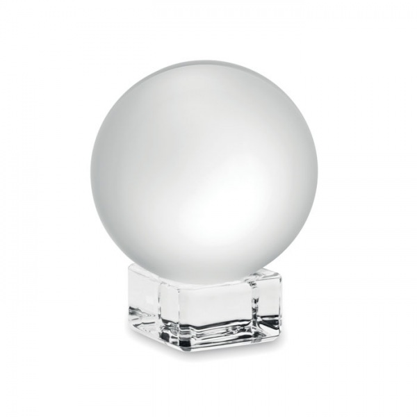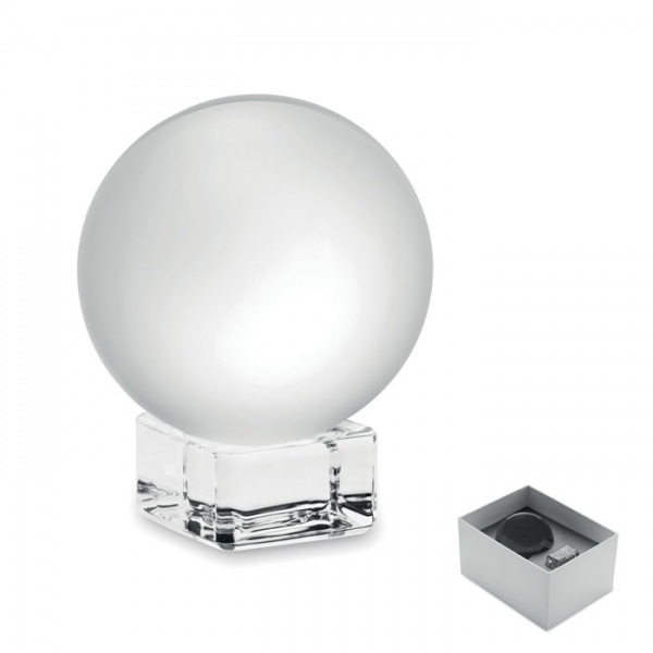 Sklenené okrúhle ocenenie alebo trofej s podstavcom. Dodávané v darčekovej krabičke.