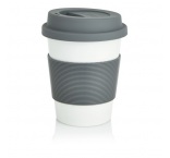 350 ml pohár so silikónovou rukoväťou a vrchnákom, šetrný voči životnému prostriediu. Vyrobený zo 100 % biologicky odbúrateľného rastlinného materiálu (PLA). Neobsahuje bisfenol A (BPA), vhodný do umývačky riadu.