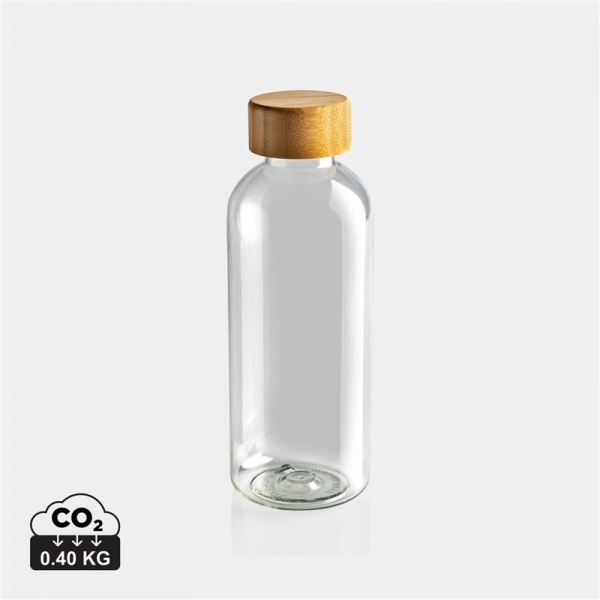 Nepriepustná fľaša s bambusovým uzáverom. 1-stenné telo fľaše z GRS recyklovaného PET plastu. Podiel recyklovaného materiálu: 75 %. Bambusový uzáver FSC. Len na studené nápoje a na ručné umývanie. Bez BPA. Objem: 660 ml. Balené v FSC krabičke.