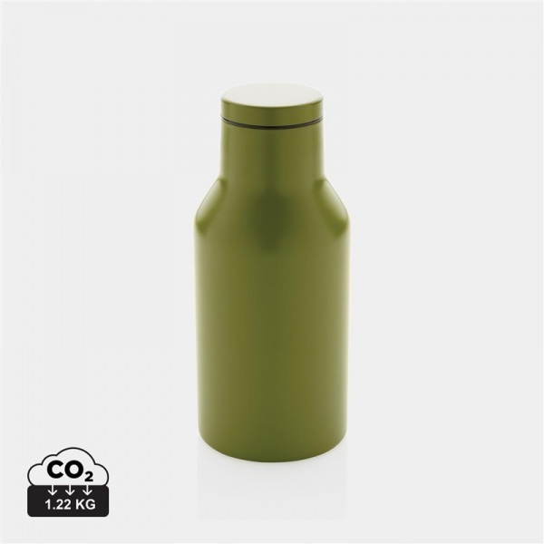 Nepriepustná fľaša so skrutkovacím uzáverom so širokým hrdlom pre ľahké čistenie. 2-stenná vákuová izolácia uchová nápoj horúci 3h a studený až 6h. Vyrobené z RCS recyklovanej ocele. Podiel recyklovaného materiálu: 89 %. Bez BPA. Balené v FSC krabičke.