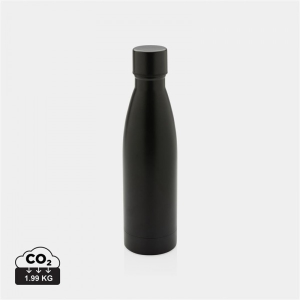 Nepriepustná termo fľaša s bezpečným skrutkovacím uzáverom. Pasuje do väčšiny držiakov. 2-stenná vákuová izolácia uchová nápoj horúci 5h a studený až 15h. Vyrobené z RCS recyklovanej ocele. Podiel rec. materiálu : 85%. Bez BPA. Balené v FSC krabičke.