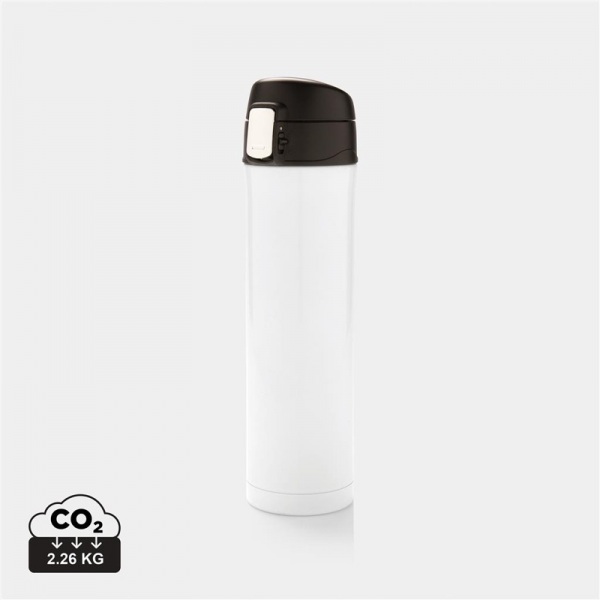 Uzáver je možné ovládať jednou rukou a uzamknúť, zároveň je navrhnutý pre ľahké umývanie aj v umývačke. Nápoje uchová až 5h teplé a 15h studené. Zodpovedá väčšine držiakov. Vyrobená z RCS recyklovanej ocele. Podiel recyklátu: 76%. Balené v FSC® krabičke.