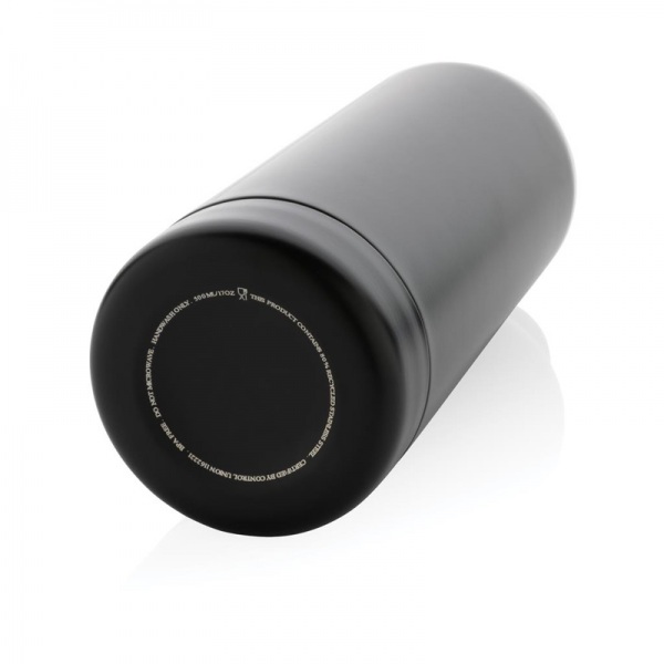 Dvojstenná vákuová fľaša. Nápoje ochová až 5 hodín horúce a až 15 hodín studené. Vyrobená z RCS recyklovanej ocele. Celkový podiel recyklátu podľa váhy produktu: 80%. Objem: 500 ml. Bez BPA. Balené v FSC® kraftovej darčekovej krabičke.