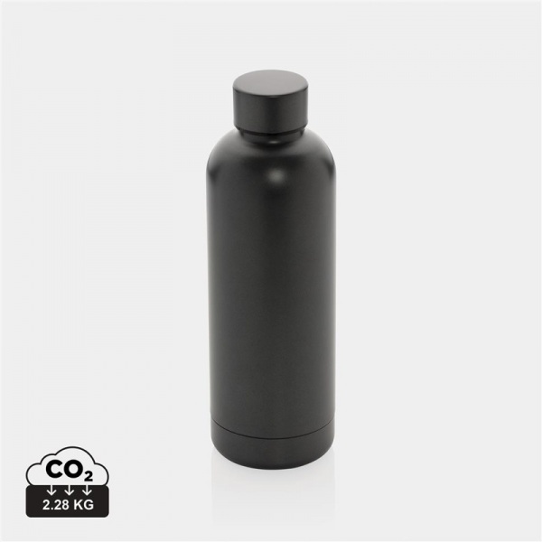 Dvojstenná vákuová fľaša. Nápoje ochová až 5 hodín horúce a až 15 hodín studené. Vyrobená z RCS recyklovanej ocele. Celkový podiel recyklátu podľa váhy produktu: 80%. Objem: 500 ml. Bez BPA. Balené v FSC® kraftovej darčekovej krabičke.