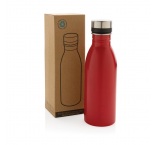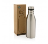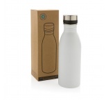 Fľaša je vyrobená z odolnej recyklovanej nehrdzavejúcej ocele 18/8. Ideálna veľkosť, nízka hmotnosť a nepriepustné viečko. Odporúča sa iba pre studené nápoje. Vyrobená z RCS rec. ocele. Celkový podiel recyklátu: 80%. Bez BPA. Balené v FSC® krabičke.