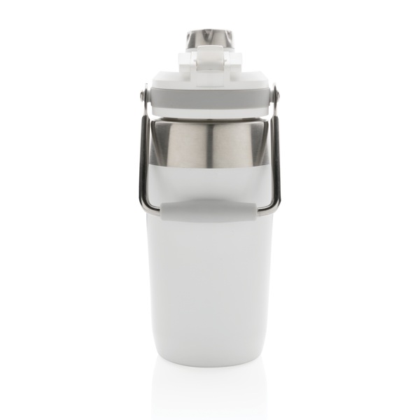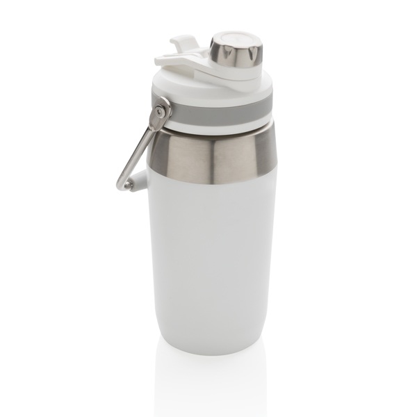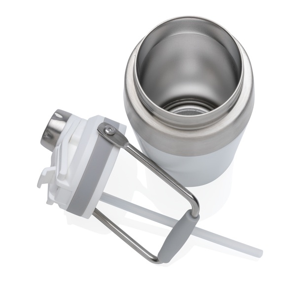 Univerzálna termo fľaša na cesty vyrobená z nehrdzavejúcej ocele. Vo skrutkovacím uzáveru je integrovaná vysúvacia slamka. Užívateľ si teda môže vybrať spôsob pitia. Vrátane madlá pre pohodlné nosenie. Nápoje udrží až 5h horúce a až 15h studené. Povrchová
