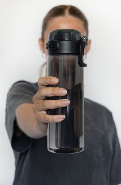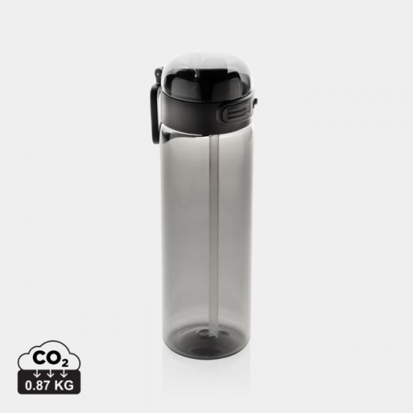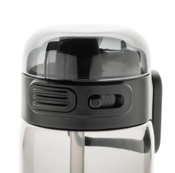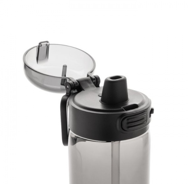 Jednoduchým kliknutím sa otvorí uzáver a odhalí vstavanú slamku. Bezpečnostný zámok zabezpečí, že viečko zostane pevne zatvorené aj vo vnútri tašky. Praktické pútko na prenášanie.Fľaša je vyrobená z 55 % recyklovaného PET plastu s certifikáciou RCS.