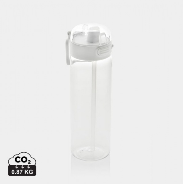 Jednoduchým kliknutím sa otvorí uzáver a odhalí vstavanú slamku. Bezpečnostný zámok zabezpečí, že viečko zostane pevne zatvorené aj vo vnútri tašky. Praktické pútko na prenášanie.Fľaša je vyrobená z 55 % recyklovaného PET plastu s certifikáciou RCS.