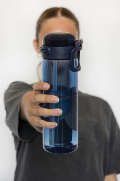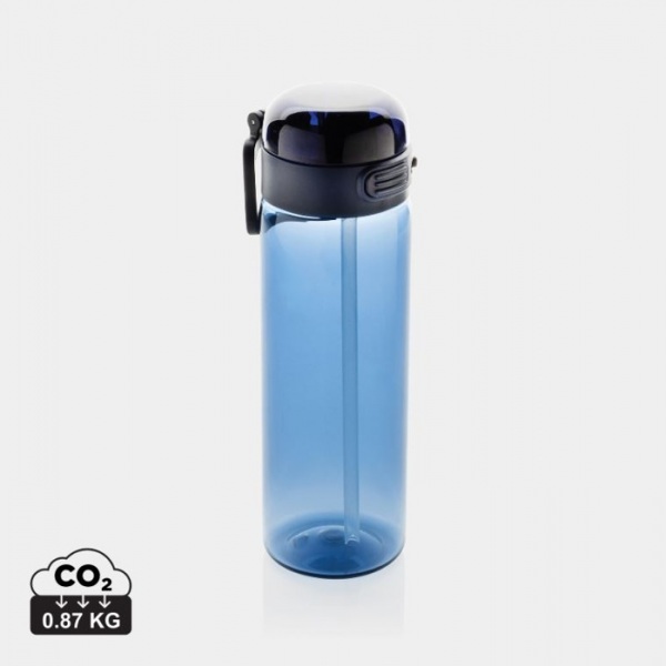 Jednoduchým kliknutím sa otvorí uzáver a odhalí vstavanú slamku. Bezpečnostný zámok zabezpečí, že viečko zostane pevne zatvorené aj vo vnútri tašky. Praktické pútko na prenášanie.Fľaša je vyrobená z 55 % recyklovaného PET plastu s certifikáciou RCS.
