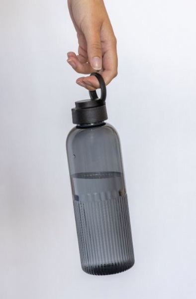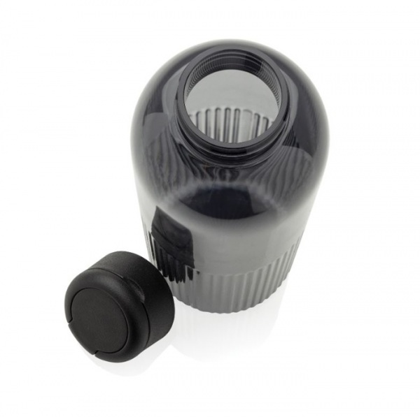 Štýlová fľaša na vodu s jedinečným zvlneným efektom na spodnej časti, ktorý nielen zaujme na pohľad, ale zlepšuje aj uchopenie. Bezpečný skrutkovací uzáver je doplnený o vstavanú rukoväť.Vyrobená zo 73 % recyklovaného PET plastu s certifikáciou RCS.
