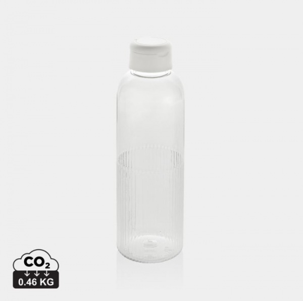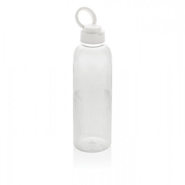 Štýlová fľaša na vodu s jedinečným zvlneným efektom na spodnej časti, ktorý nielen zaujme na pohľad, ale zlepšuje aj uchopenie. Bezpečný skrutkovací uzáver je doplnený o vstavanú rukoväť.Vyrobená zo 73 % recyklovaného PET plastu s certifikáciou RCS.