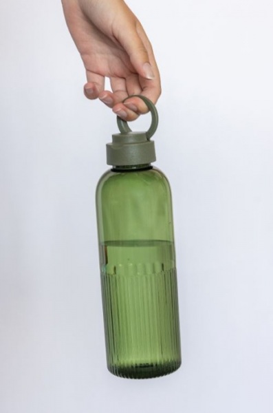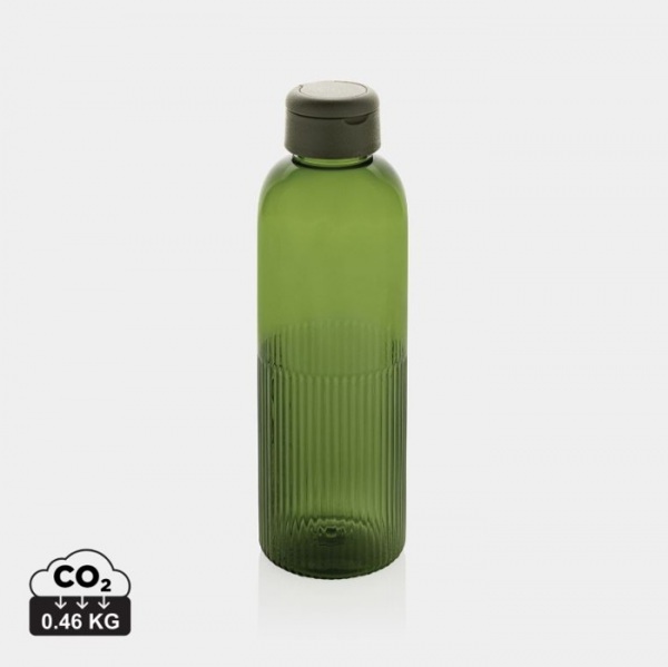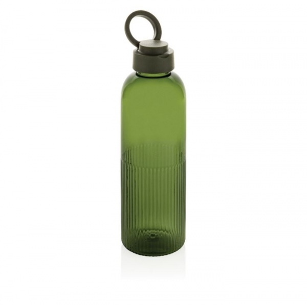 Štýlová fľaša na vodu s jedinečným zvlneným efektom na spodnej časti, ktorý nielen zaujme na pohľad, ale zlepšuje aj uchopenie. Bezpečný skrutkovací uzáver je doplnený o vstavanú rukoväť.Vyrobená zo 73 % recyklovaného PET plastu s certifikáciou RCS.