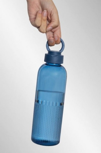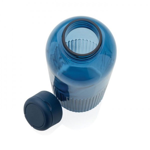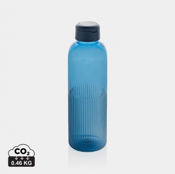 Štýlová fľaša na vodu s jedinečným zvlneným efektom na spodnej časti, ktorý nielen zaujme na pohľad, ale zlepšuje aj uchopenie. Bezpečný skrutkovací uzáver je doplnený o vstavanú rukoväť.Vyrobená zo 73 % recyklovaného PET plastu s certifikáciou RCS.