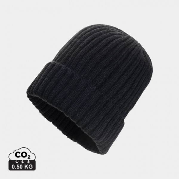 Čiapka sa vyznačuje veľkým rebrovým úpletom a manžetou pre moderný vzhľad. S indikátorom AWARE™, ktorý overuje skutočné použitie recyklovaných materiálov. 2% z výťažku každého predaného produktu Aware™ bude venovaných Water.org.