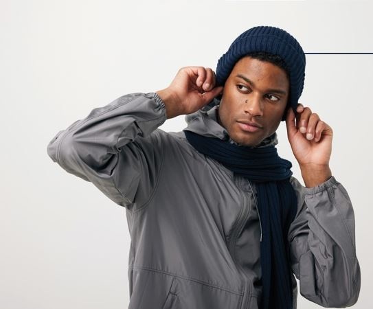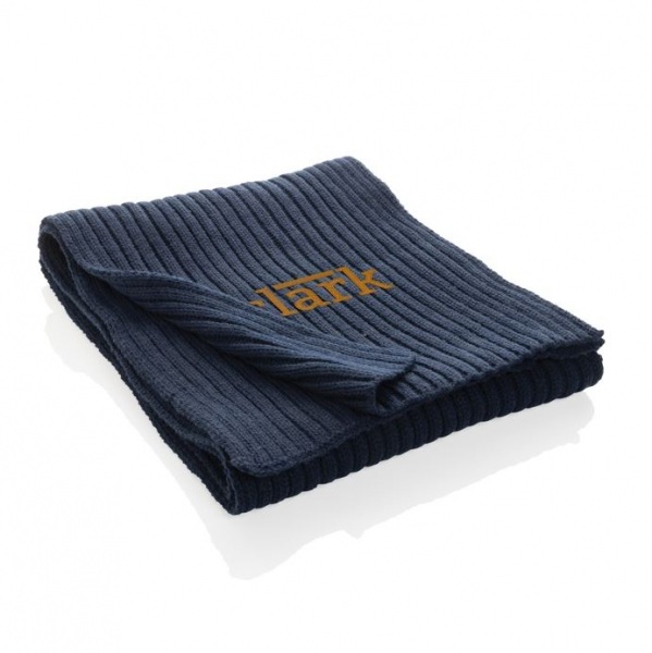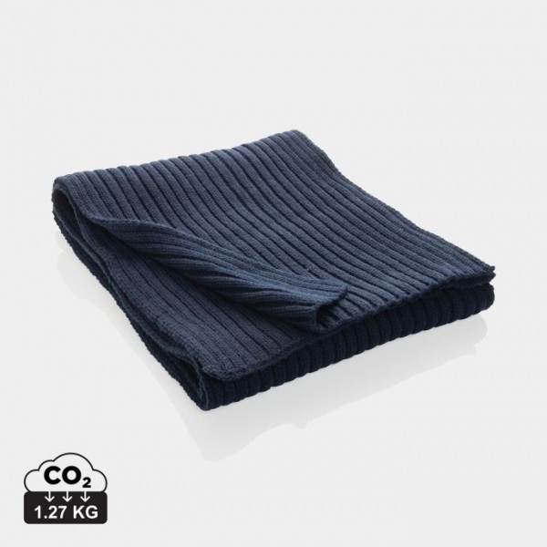 Štvorvrstvový pletený šál z materiálu Polylana® (unikátna priadza vyrobená z kombinácie panenských a recyklovaných materiálov). Vrátane skenovateľnej zložky AWARE™. Úspora 13,1 l vody. Veľkosť: 180 x 25 cm.