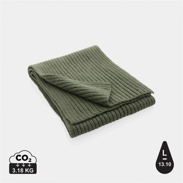 Štvorvrstvový pletený šál z materiálu Polylana® (unikátna priadza vyrobená z kombinácie panenských a recyklovaných materiálov). Vrátane skenovateľnej zložky AWARE™. Úspora 13,1 l vody. Veľkosť: 180 x 25 cm.