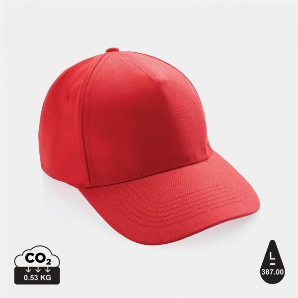 Táto čiapka ušetrila 387 litrov vody. Jednoduchá a pohodlná 5-panelová šiltovka, vyšívané vetracie otvory a kovová pracka. Bavlnený keper vyrobený zo 100% recyklovaných materiálov a AWARE™ tracer. Gramáž materiálu je 280 g/m2. Veľkosť 58 cm.