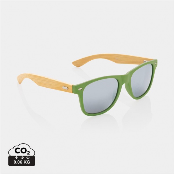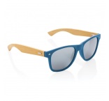 Slnečné okuliare z kombinácie RCS recyklovaného PC a FSC® bambusu. Celkový podiel recyklátu: 41%. Rám zo 100% recyklovaného PC. Zatmavené akrylové sklíčka sú v súlade s EN ISO 12312-1, UV 400 a CAT 3. Balené v FSC® kraftovej darčekovej krabičke.