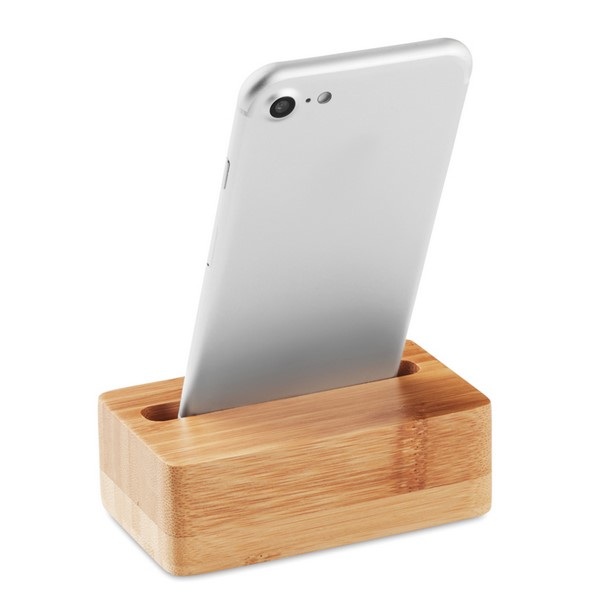 Bambusový stojan a zosilňovač na mobil. Bambus je prírodný materiál, farba stojanov sa môže mierne líšiť.