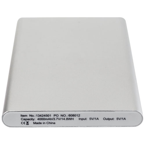Tento hliníkový powerbank obsahuje lítiovú polymérovú 4 000 mAh batériu. Indikátory LED svieta a ukazujú zostávajúcu kapacitu powerbanku.