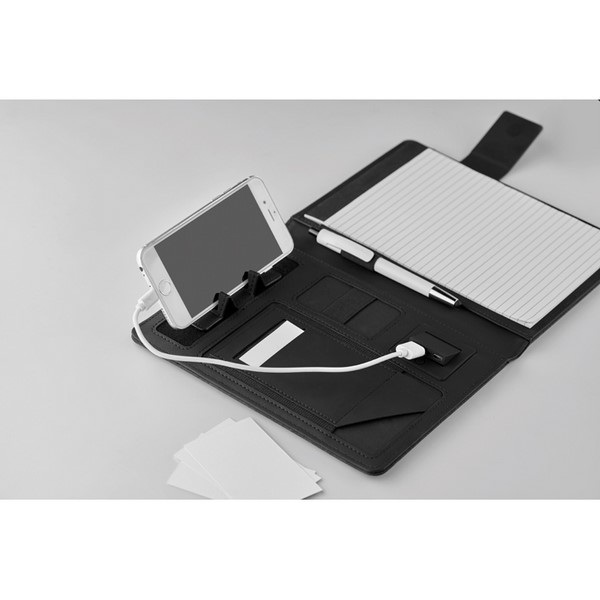 A5 dosky na dokumenty z PU plátna s magnetickým zatváraním, 20 stranový blok a niekoľko vnútorných vreciek.