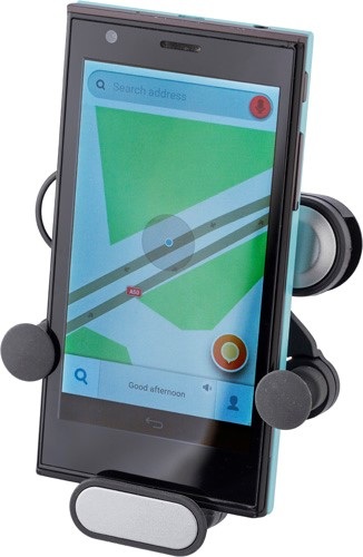 Držiak na mobil z ABS a s pružným mechanizmom, ktorý sa prispôsobuje veľkosti a polohe mobilu. Balené v darčekovej krabičke.