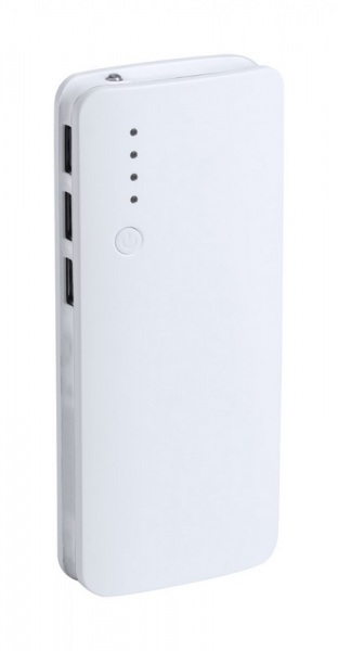 Plastová USB power banka s 3 nabíjacími porty, 1 LED svetlom a 10000 mAh batérií. Bez nabíjacieho kábla.