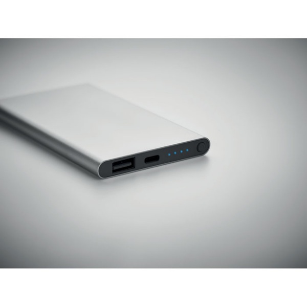 Powerbanka s kapacitou 4000 mAh z recyklovaného hliníka. Výstupný prúd DC5V/2A. Súčasťou balenia je kontrolka a USB kábel s konektorom typu C. Vstup/výstup: Typ-C.