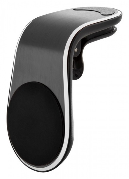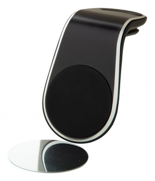 Hliníkový magnetický držiak na mobilný telefón do auta s upevnením do vetracieho otvoru. Vrátane samolepiaceho kovového pliešku.