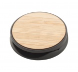 Bambusom potiahnutý, okrúhly, plastový stojan na mobil so samolepiacou základňou.