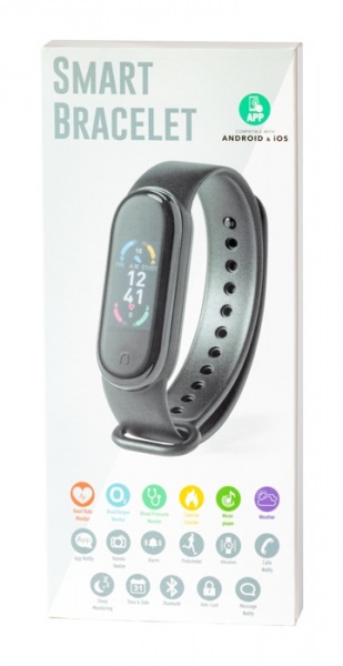 Viacjazyčné, bluetooth smart hodinky s 0,96" TFT displejom a TPU remienkom. S funkciami monitora srdcového tepu, krvného tlaku a kyslíka v krvi. Vrátane USB nabíjacieho kábla.