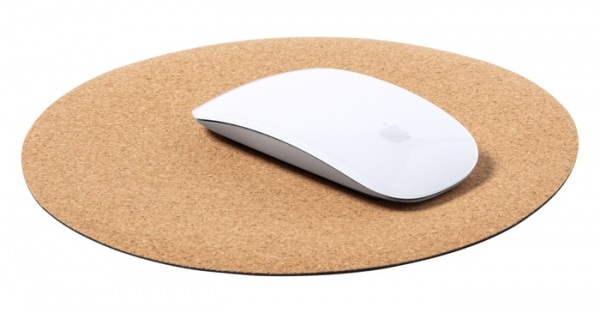 Okrúhla podložka pod myš potiahnutá prírodným korkom na silikónovom podklade.